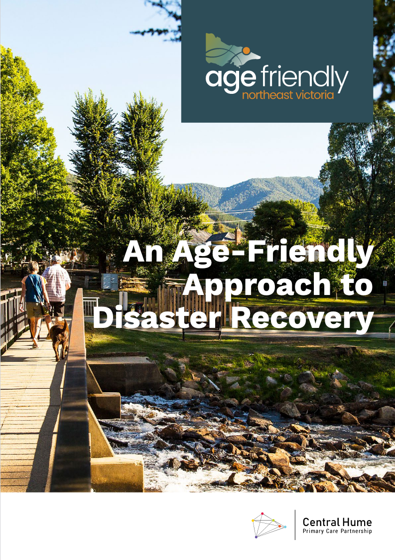 Restoring community strength following devastation of natural disasters requires focused and enduring commitment. The most pressing recovery priorities are universal: meeting urgent health needs, securing safe shelter, accessing food and water, re-establishing communication and transport connections, and resuming social and economic networks. Older people bring particular strengths and vulnerabilities to their communities in disaster recovery. This Australian report draws on national and international research and policy to describe those strengths and vulnerabilities, and proposes corresponding practical, community-level actions that can be incorporated into recovery plans and actions. These actions have potential to mitigate the negative individual health and wellbeing impacts wrought by disasters thus expediting the recovery process and deepening community resilience.