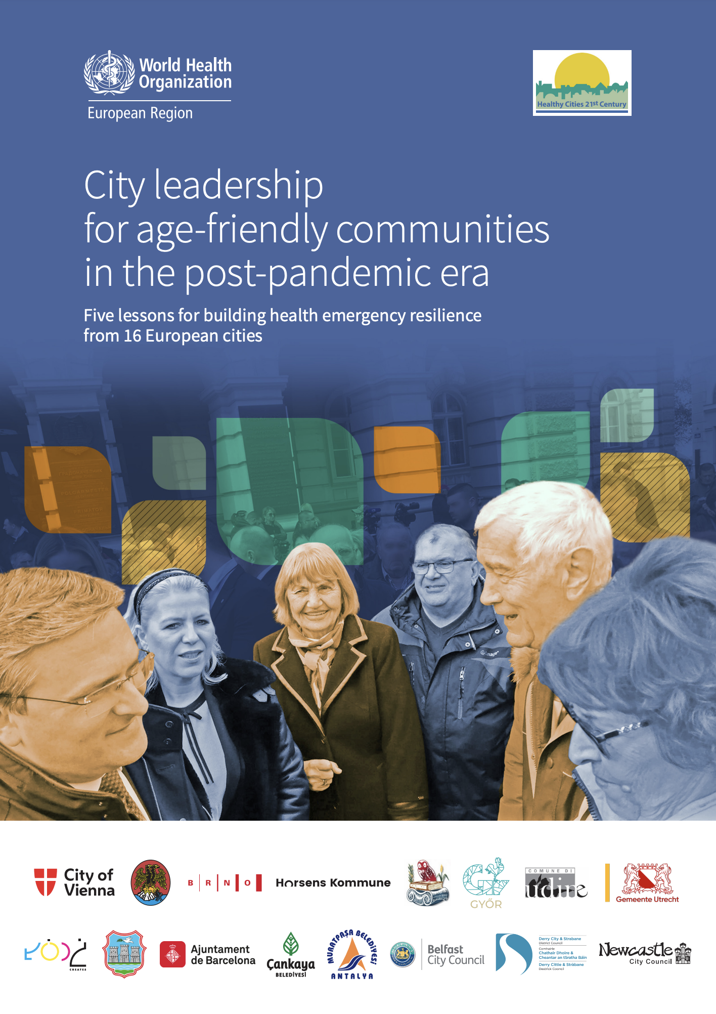The COVID-19 pandemic hit older people hardest. This policy brief, intended for planners, policy-makers and politicians, was produced by the 16 cities of a Healthy Ageing Task Force and the WHO Regional Office for Europe. During the pandemic, cities provided leadership and innovative programmes to meet the four key challenges of survival, equity, creating conditions for people to adapt and thrive, and ensuring older people have a voice which is listened to and acted upon. Drawn from the experience of the cities, five lessons should inform age-friendly, resilient and adaptive cities for all types of health emergency: building resilience together; using a cycle of preparedness, response and recovery; adopting an all-hazards approach; investing in community infrastructure; and creating systems for feedback from older citizens. Older people should not be left behind when cities prepare for, respond and recover from future crises.