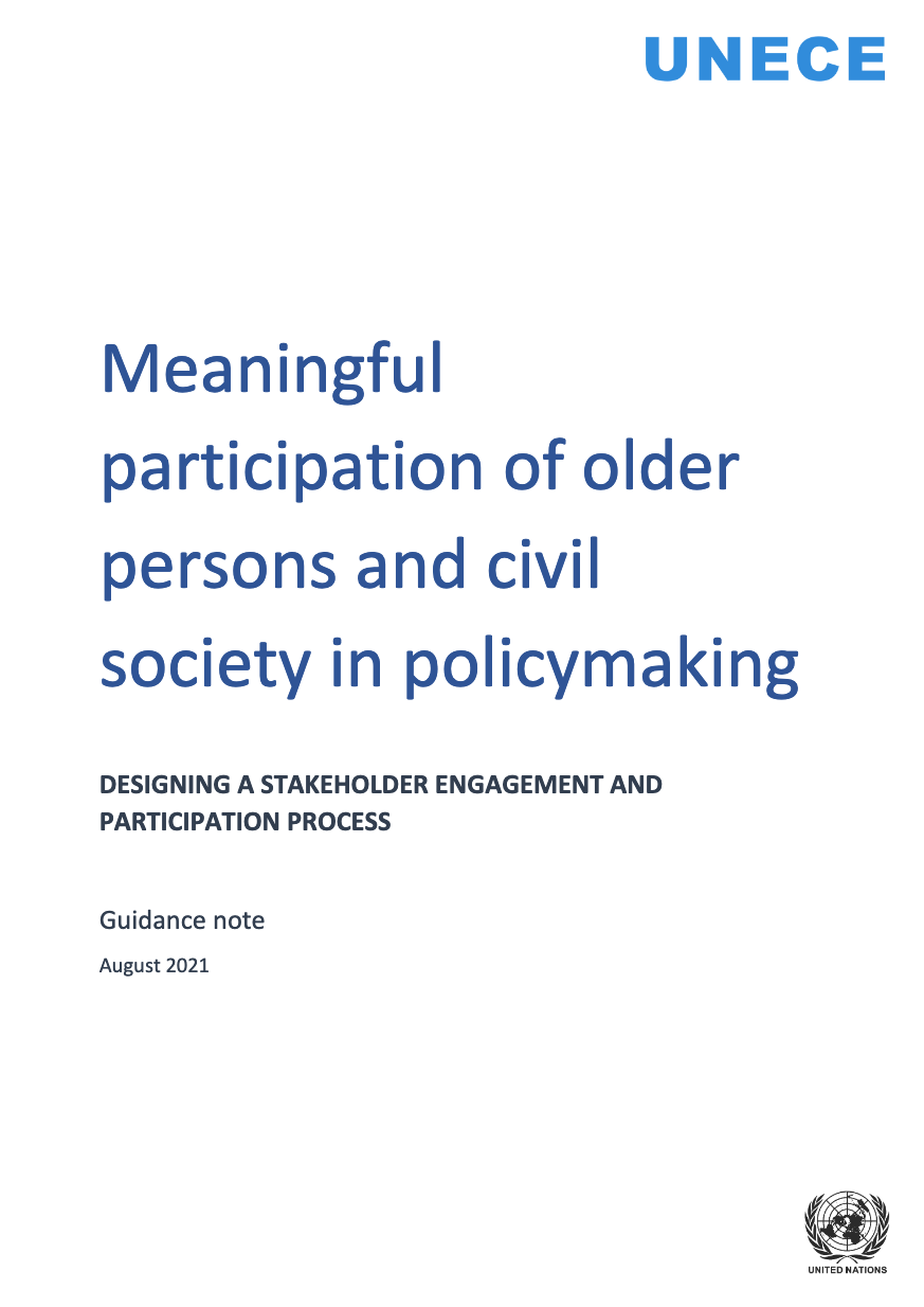 Strengthening the voice and agency of older persons in decisions that affect them is essential to fulfil the 2030 Agenda’s pledge of leaving no-one behind. It is a key step in ensuring that ageing-related issues are accounted for in the design and implementation of policies across various sectors and levels. To support this, UNECE has issued a guidance note on the meaningful participation of older persons and civil society across the policymaking cycle. The guidance note makes the case for the participation of older persons and civil society in decision-making and advocates for long-standing engagement that genuinely shapes policies. It suggests some key steps to bring governments and civil society together and recommends tools to make the engagement of civil society actors and older persons meaningful. Some of the most important are: including older persons and civil society throughout the design, implementation and evaluation of policies; creating institutional bodies that involve older persons and civil society along with focal points from line ministries and various levels of government; facilitating the creation of older people’s groups and dedicated spaces for marginalized older persons; establishing channels between older persons, civil society, other relevant stakeholders and decision-makers; as well as building the skills of older persons to engage in policy processes. In addition, the guidance note showcases a variety of good practice examples from the UNECE region. It highlights cases of regular and systematic stakeholder engagement to inform ageing-related policy, as opposed to one-off consultations. Specific examples include annual stakeholder fora on policies impacting older persons in Ireland, which are attended by a variety of actors from government, local authorities, civil society, and older persons themselves. Key issue areas identified by the fora are picked up for action by the Department of Health, showcasing the direct impact of debates during the fora for policy steps and activities.