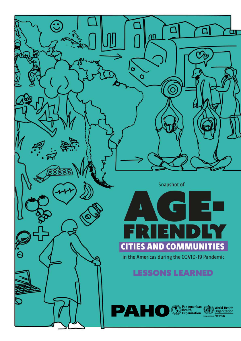 Most COVID-19 related deaths in the Region of the Americas have occurred in people aged 70 years and over. The impact of the COVID-19 pandemic has further revealed the fragility of older adults, as well as of the health systems and communities that support them. However, age-friendly environments and related initiatives have played a key role in the timely adaptation to and mitigation of the effects of COVID-19. Various age-friendly cities and communities in Latin America participated in a survey aiming to understand the role of such initiatives in the Region, the impact of being part of the global network, and to present best practices adopted during the COVID-19 pandemic. This publication aims to show that being part of the “age-friendly global network” is beneficial not only to older persons but for all, and it can be especially beneficial in emergency situations. Its intended impact is to increase the quality of planning and concrete actions of age-friendly environments within the Region of the Americas. The primary target audiences of this publication are Member States of the Pan American Health Organization (PAHO) and stakeholders that are involved and have prior knowledge of the practice of age-friendly environments. It also intends to reach age-friendly cities and communities in the Region of the Americas to share good practices that can be reproduced, as well as encourage such initiatives on behalf of older individuals. Its key messages highlight the importance of access to technology for older people and how being an age-friendly city plays an important role in reaching vulnerable populations. It also shows how a multisectoral approach and the involvement of different actors have made a huge impact in the development of activities toward an age-friendly environment and in favor of the protection of older adults.