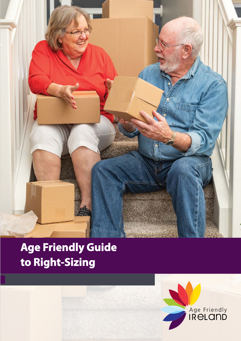 This guide to rightsizing, the process of moving home in later life into housing that is more suitable, was developed based on research carried out on behalf of Age Friendly Ireland in 2020. This booklet is intended for older people and their families who are considering their housing options in later life. It is not intended to be an exhaustive list, rather a guidance document with some useful information and telephone numbers. The content of the guide was drawn from the research process, which included case studies with older people, interviews with agencies and service providers, literature review and a survey.
